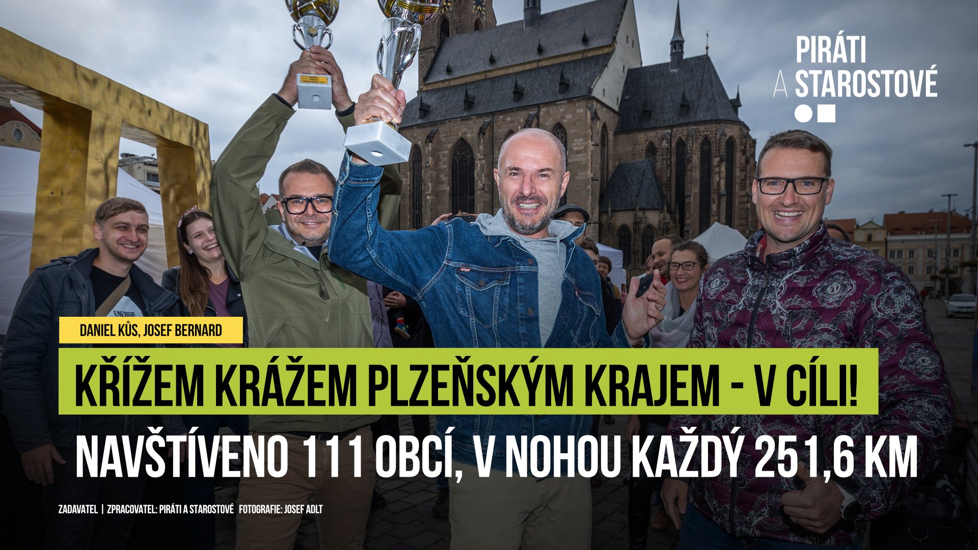 Každý z nich při cestách za občany i do těch nejodlehlejších koutů Plzeňského kraje od 22. června do 24. září ušel 251,6 kilometrů. “Setkávání s občany nám dalo a stále dává velkou energii a zpětnou vazbu. Jsem rád, že jsme s Danem zvládli naši červnovou výzvu navštívit 100 obcí a společně našlapat 500 kilometrů,” říká Josef Bernard, lídr Pirátů a Starostů v Plzeňském kraji.